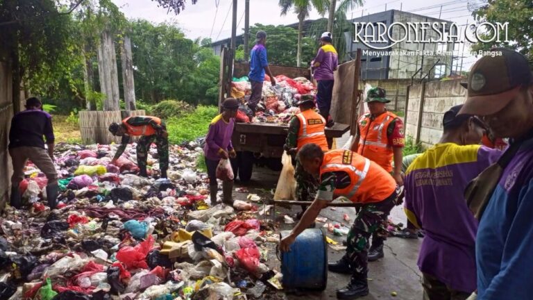 Tigaraksa (KARONESIA.COM) – Personil Babinsa Koramil 13/Cisoka bersama warga setempat membersihkan tumpukan sampah di Jalan Pasir Muncang, Kecamatan Jayanti, Kabupaten Tangerang, Senin (09/03/2026). Kegiatan ini menjadi bentuk nyata kepedulian TNI terhadap lingkungan sekaligus memperkuat sinergi dengan masyarakat. Satgas Kodim 0510/Tigaraksa yang terlibat dalam aksi gotong royong menargetkan sisi jalan dan area permukiman yang sebelumnya menumpuk…