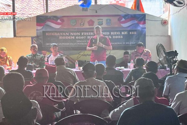Kota Bekasi, KARONESIA – Kegiatan TNI Manunggal Membangun Desa (TMMD) ke-125 Kodim 0507/Bekasi kembali menorehkan kontribusi nyata bagi masyarakat, tak hanya lewat pembangunan fisik tetapi juga pelayanan non-fisik yang menyentuh langsung kebutuhan warga. Di wilayah Mustikasari, Kecamatan Mustikajaya, Kota Bekasi, tim kesehatan dari Kesdam Jaya melalui Polkes 00.09.06 Kota Bekasi menggelar pemeriksaan dan penyuluhan kesehatan…