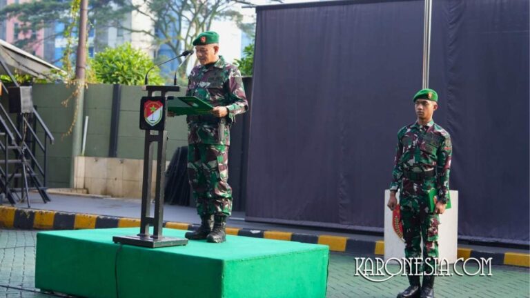 KARONESIA.COM | Tangerang – Upacara bendera 17-an di lingkungan Korem 052/Wijayakrama kembali digelar dengan penuh khidmat pada Senin (19/5/2025) di Lapangan Upacara Makorem, Kelapa Dua, Kabupaten Tangerang. Momen bulanan ini diikuti para prajurit dan ASN, serta dipimpin langsung oleh Kasi…