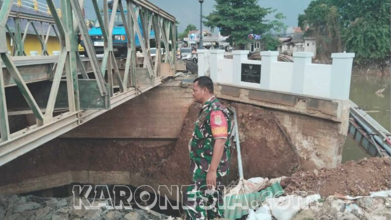 Babinsa Sepanjang Jaya Cek Kondisi Jembatan Bailey Kemang Pratama