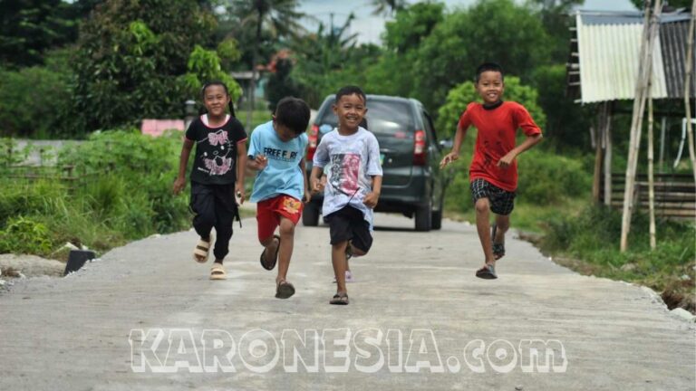 "Jalan baru ini bikin kami senang, sekarang bisa lari sekencang mungkin!" – Rahmat, 9 tahun.