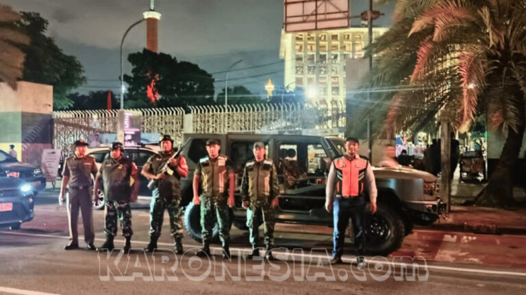 Personel Babinsa Koramil 02/SB berpatroli menggunakan kendaraan taktis Maung di malam hari.