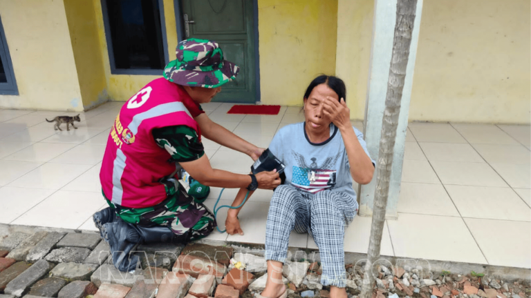 Tim kesehatan Satgas TMMD Ke-123 memberikan pemeriksaan kesehatan gratis kepada warga di Desa Bantar Panjang.
