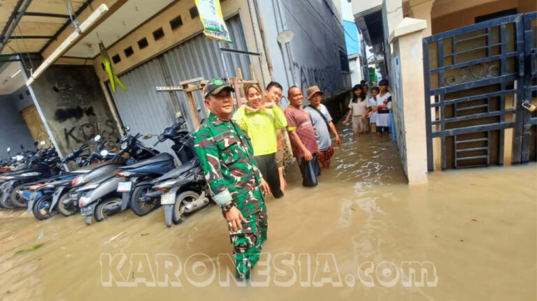 Genangan Meluas, Babinsa Koramil 01 Tangerang Terjun ke Lokasi Banjir