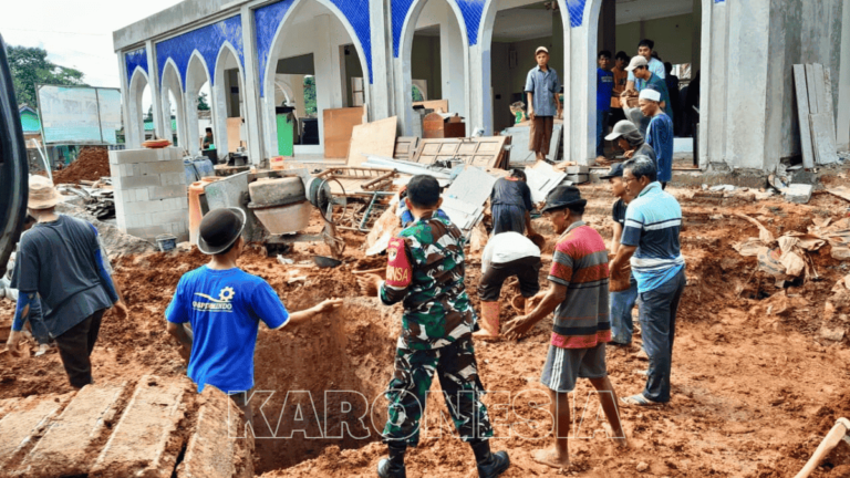 Babinsa Koramil 14/Panongan bersama warga bergotong royong membersihkan halaman Masjid Nurul Yakin.(foto)