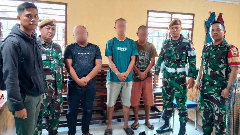 Tiga pelaku pengeroyokan anggota TNI menyerahkan diri ke Polsek Pancur Batu, didampingi tokoh masyarakat dan pihak kepolisian.(foto)