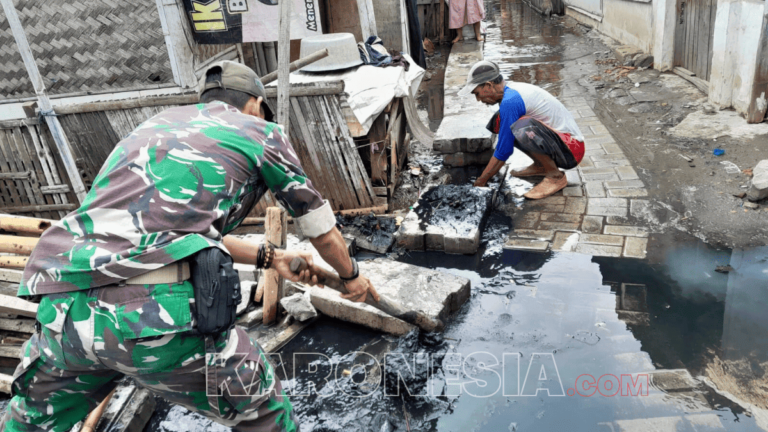 Babinsa Koramil 01/Tln Bantu Warga Bersihkan Saluran Air di Desa Tanjung Pasir