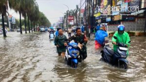 Jakarta Selatan, (KARONESIA.com) – Langkah kaki para prajurit TNI memecah genangan air cokelat yang merendam pemukiman padat di Kelurahan Jati Padang, Jakarta Selatan, Jumat (23/1/2026). Di bawah komando langsung Danramil 03/Pasar Minggu, Mayor Kav Sugiyanto, personil TNI bergerak menyisir setiap gang sempit guna memastikan keselamatan warga yang terjebak luapan air.