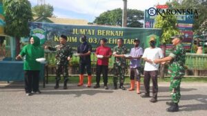 Sejak pagi, suasana akrab mewarnai halaman menasah. Prajurit dan warga bergotong royong membersihkan halaman, tempat wudhu, hingga bagian dalam rumah ibadah. Sapuan sapu lidi dan guyuran air bercampur tawa ringan menghadirkan potret sederhana tentang kuatnya budaya gotong royong yang masih mengakar di tengah masyarakat.