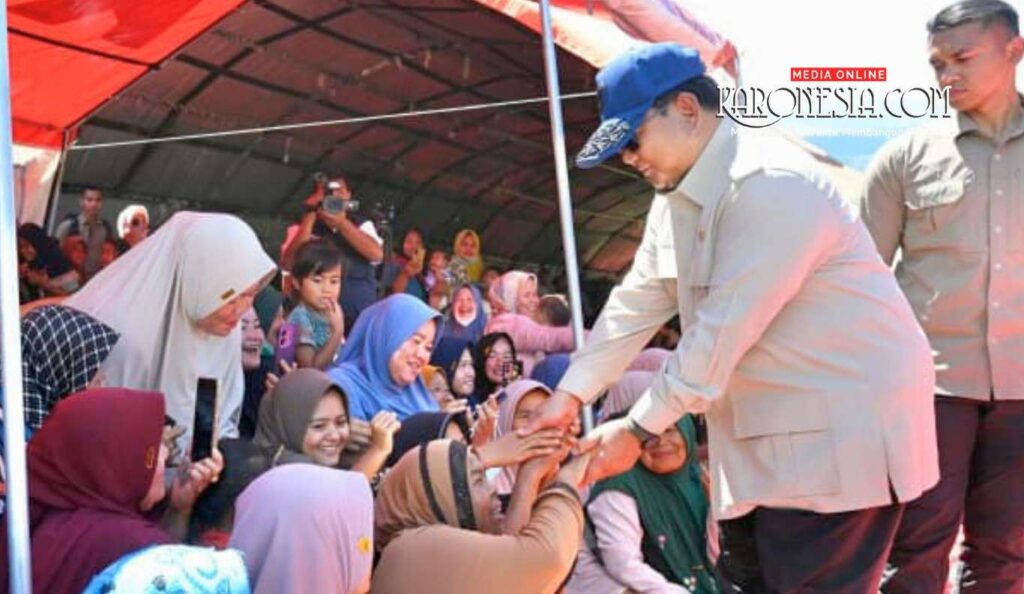 Seorang warga menyampaikan terima kasih langsung, “Presiden Prabowo, terima kasih sudah datang di Bumi Sepakat Segenep.”