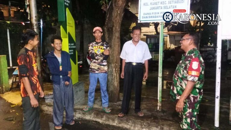 Jakarta, KARONESIA.com | Upaya memperkuat kemanunggalan antara TNI dan rakyat terus dijaga melalui kegiatan nyata di tingkat kewilayahan. Salah satunya ditunjukkan oleh Babinsa Koramil 06/Setiabudi Kodim 0504/Jakarta Selatan, Serma Rudy dan Serka Darwis, yang turut melaksanakan ronda malam bersama warga…