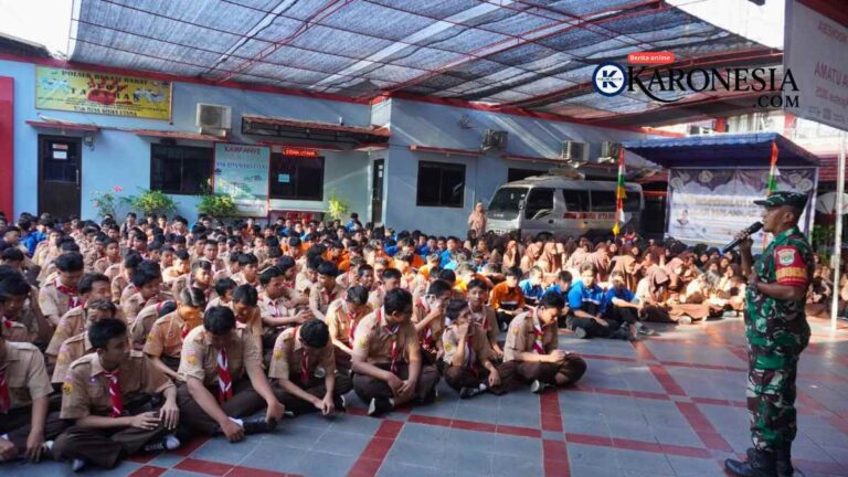 Kota Bekasi, KARONESIA.COM | Babinsa Kota Baru Koramil 01/Kranji Kodim 0507/Bekasi, Serma Muslih, menyampaikan materi wawasan kebangsaan kepada siswa SMK Bina Siswa Utama, usai pelaksanaan upacara Hari Kesaktian Pancasila di Kota Bekasi, Selasa (1/10/2025). Kegiatan yang berlangsung di halaman sekolah…