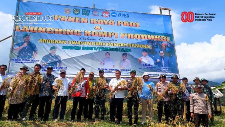 Pandeglang, KARONESIA | Kodim 0601/Pandeglang menggelar panen raya padi sekaligus meluncurkan Kompi Produksi di Kampung Mataram, Desa Carita, Kabupaten Pandeglang, Kamis (28/8/2025). Acara dihadiri berbagai unsur, mulai dari TNI, Polri, DPRD, Bulog, hingga kelompok tani. Kehadiran mereka menunjukkan sinergi lintas…