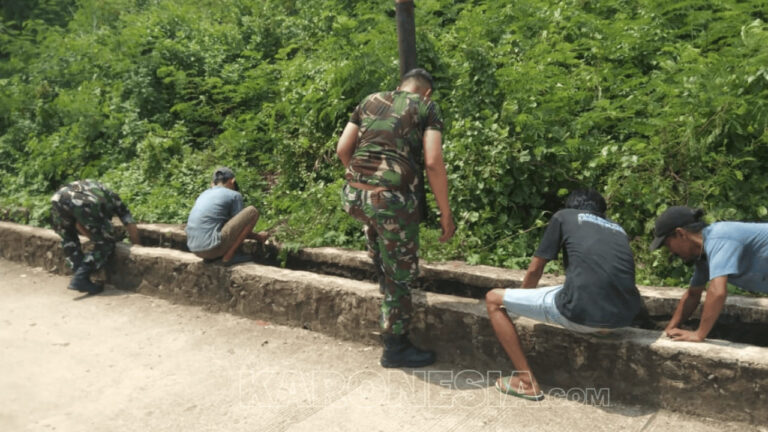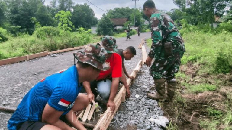 Satgas TMMD Kodim 0510/Tigaraksa memasang bagesting dalam proyek pengerasan jalan desa di Kampung Namprak.