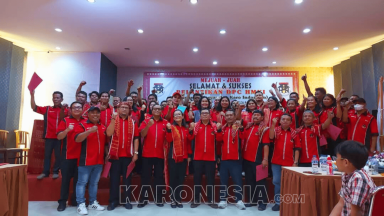 Pengurus DPC HMKI Tangsel berfoto bersama setelah pelantikan, mencerminkan kekompakan dan semangat kekeluargaan.