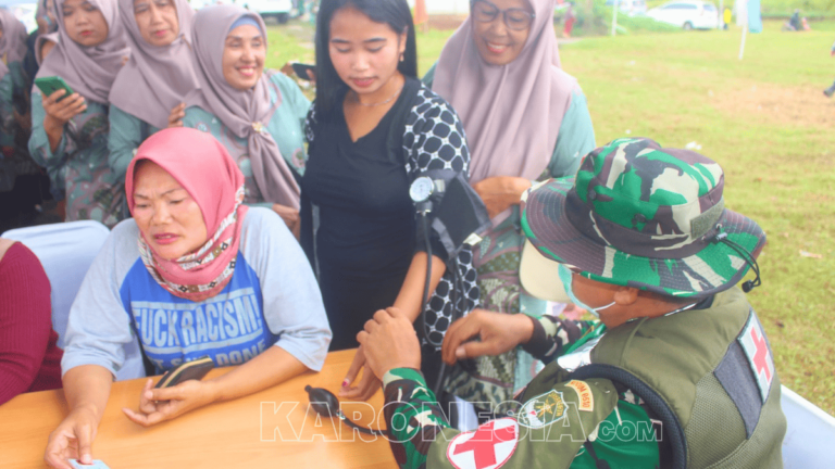 Personel TNI Kodim 0510/Tigaraksa melayani warga Desa Cileles saat pemeriksaan kesehatan gratis dalam program TMMD ke-123.