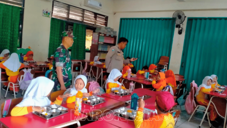 Babinsa Koramil 09/Serut saat memantau pendistribusian Makan Bergizi Gratis di SDN Lengkong Karya. (foto)