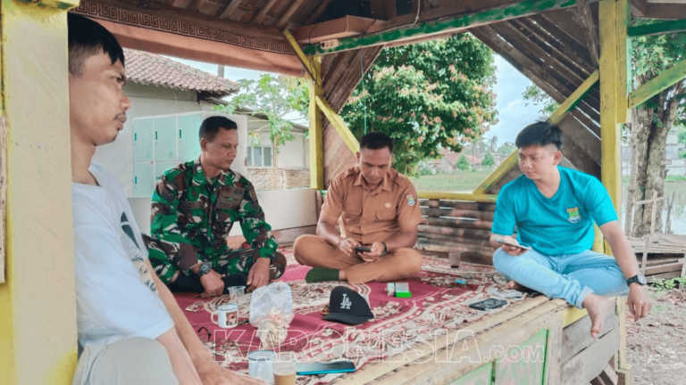 Serka Budi Sutopo, Babinsa Desa Talok, berbincang dengan warga di bale-bale bambu Kampung Pasir Sawo. (foto)