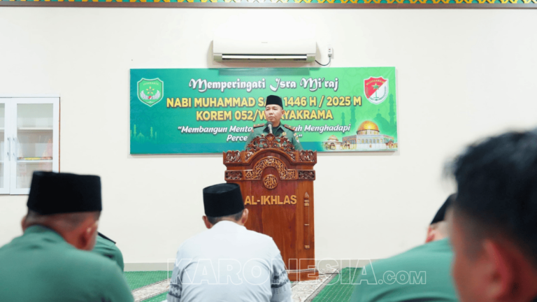 Danrem 052/Wkr Brigjen TNI Zulhadrie S. Mara bersama prajurit mengikuti peringatan Isra Mi'raj di Masjid Al Ikhlas Makorem 052/Wkr.(foto)