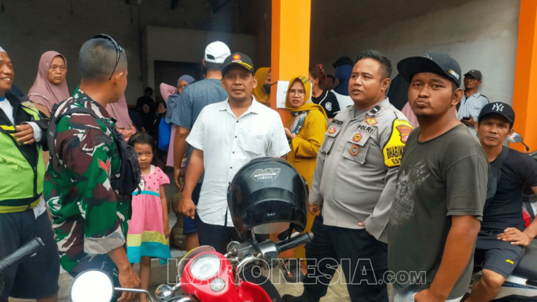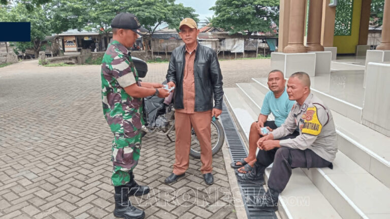 Babinsa dan Bhabinkamtibmas saat membagikan kupon berobat gratis kepada warga Sukamanah.(foto)