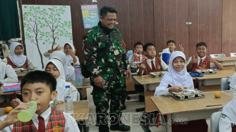 Kodim 0505/JT bersama tim Dapur Khusus membagikan makanan bergizi kepada siswa.(foto)