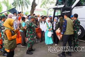 KARONESIA.COM | Tigaraksa – Kodim 0510/Tigaraksa menggelar apel pengamanan pemulangan jamaah haji Kloter 21 JKG Kabupaten Tangerang Tahun 1446H/2025M, Kamis (19/06/2025), pukul 06.30 WIB di halaman Kantor Kemenag Kabupaten Tangerang, Kecamatan Tigaraksa. Apel dipimpin oleh Lettu Inf Wahyono selaku Pasandi Kodim 0510/Trs sekaligus penanggung jawab pengamanan. Sebanyak 393 jamaah haji yang tergabung dalam Kloter 21…