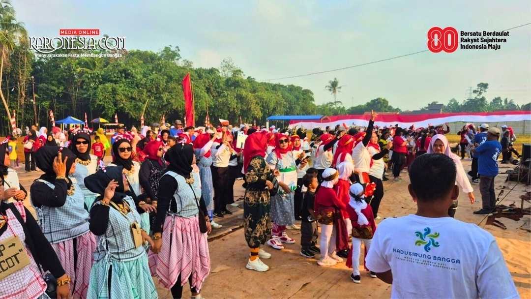 Tigaraksa (KARONESIA) | Ratusan warga Desa Kadusirung, Kecamatan Pagedangan, Kabupaten Tangerang, tumpah ruah mengikuti jalan sehat dalam rangka perayaan HUT ke-80 RI, Minggu pagi (24/8/2025).