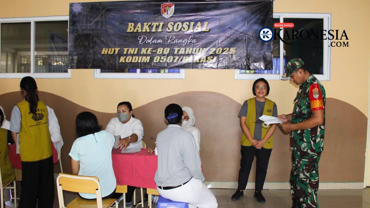 Kota Bekasi, KARONESIA.COM | Kodim 0507/Bekasi Korem 051/Wijayakarta bekerja sama dengan Yayasan Buddha Tzu Chi Indonesia menggelar bakti sosial kesehatan dalam rangka memperingati HUT ke-80 TNI. Kegiatan ini berlangsung di Sekolah Global Persada Mandiri, Kelurahan Bekasi Jaya, Kecamatan Bekasi Timur, Minggu (28/6/2025) dan diikuti ratusan warga.