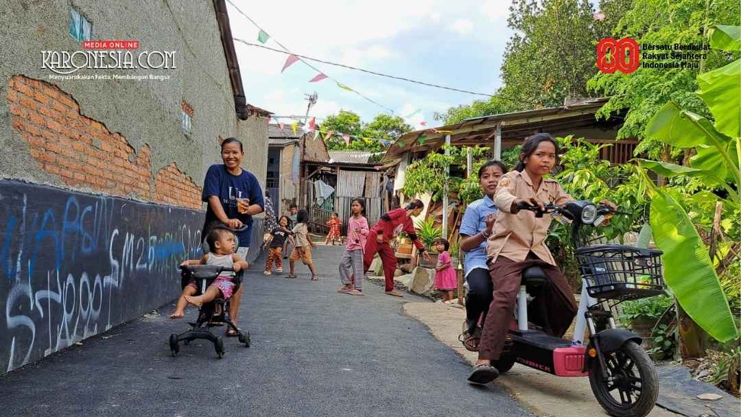 Jalan yang selama bertahun-tahun rusak parah dan kerap menyulitkan warga kini berubah menjadi akses nyaman. Anak-anak tampak berlarian gembira di atas aspal baru, sementara pedagang dan pekerja mulai merasakan kemudahan mobilitas sehari-hari.