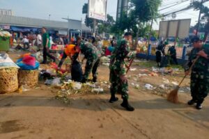 Peringati HUT TNI ke-79 Personil Kodim 0510/Trs Karyabakti Bersihkan Pasar Legok