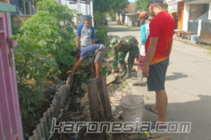 Koramil Pasar Rebo dan Warga Bersihkan Bantaran Sungai Ciliwung