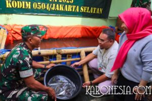 KARONESIA.COM | Jakarta Selatan  – Komando Distrik Militer (Kodim) 0504/Jakarta Selatan menginisiasi program budidaya ikan lele menggunakan kolam terpal di lahan kosong belakang Markas Komando Rayon Militer (Koramil) 06/Setiabudi, Jakarta Selatan. Langkah strategis ini bertujuan memperkuat ketahanan pangan masyarakat, Jumat (13/6/2025). Program inovatif ini merupakan bagian dari upaya Kodim 0504/JS dalam memberdayakan lahan tidak produktif….