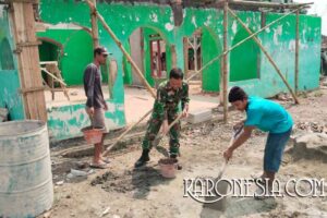 KARONESIA.COM | Tigaraksa – Babinsa Desa Sukatani Koramil 13/Cisoka, Kodim 0510/Tigaraksa, Serda A. Karim, turun langsung mendampingi warga dalam kegiatan gotong royong merehabilitasi musolah di Kampung Cicurug RT 01 RW 02, Kecamatan Cisoka, Kabupaten Tangerang, Minggu (25/6/2025). Kegiatan tersebut merupakan bagian dari komunikasi sosial (komsos) Babinsa dengan masyarakat binaan guna membangun sinergi dan mempererat hubungan…