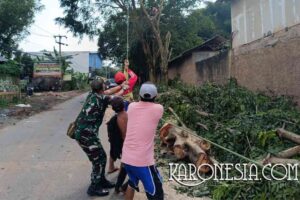 KARONESIA.COM | Kab Bekasi – Babinsa Desa Cibening, Koramil 06/Setu Kodim 0509/Kabupaten Bekasi, Serka Darmaji, bersama warga Kampung Cikedokan RT 002 RW 001, bergotong royong memotong pohon yang mengganggu jalur listrik di sepanjang Jalan Raya Setu–Cikarang, Sabtu (14/6/2025). Kegiatan tersebut digelar dalam rangka pembinaan bhakti TNI, dengan tujuan utama mencegah potensi kecelakaan akibat pohon tumbang…