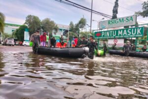 SEMARANG,KARONESIA.com – Hujan deras yang mengguyur Kota Semarang sejak Kamis malam, 8 Maret 2024 menyebabkan banjir di beberapa wilayah, termasuk di wilayah Koramil 06/Genuk. Berdasarkan informasi petugas pada Sabtu (16/3/2024) banjir masih menggenangi 13 kelurahan di wilayah Koramil 06/Genuk dengan ketinggian air bervariasi antara 20 hingga 80 cm. Banjir ini menyebabkan beberapa ruas jalan terputus…