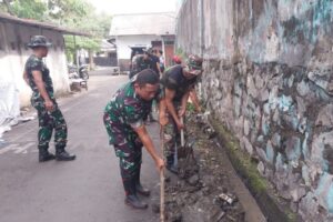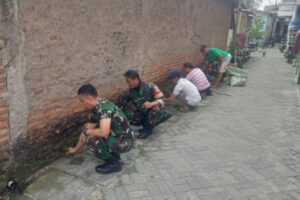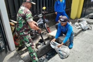 Koramil Pasar Rebo dan Warga Bersihkan Bantaran Sungai Ciliwung