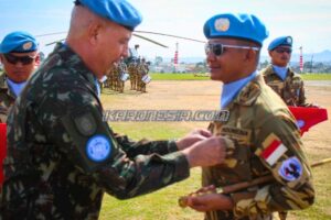 Insert. Force Commander MONUSCO Lt Gen Ulisses de Mesquita Gomes menyematkan medali kehormatan PBB kepada prajurit Satgas TNI BGC 39-F Jakarta (KARONESIA.COM) – Satgas Batalyon Gerak Cepat (BGC) 39-F MONUSCO menggelar upacara Medal Parade di Republik Demokratik Kongo, sebagai bentuk penghormatan atas dedikasi satu tahun penugasan dalam misi perdamaian Perserikatan Bangsa-Bangsa (PBB). Kegiatan yang berlangsung,…