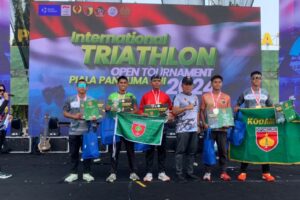 KAROnesia.com, Surabaya – Dalam rangkaian puncak peringatan HUT TNI ke-79, prajurit Yonif 410/Alugoro kembali mengharumkan nama satuan dan Kodam IV/Diponegoro. Pada ajang International Triathlon Piala Panglima TNI 2024 yang digelar di Universitas Negeri Surabaya (Unesa), dua prajurit Yonif 410/Alugoro berhasil meraih podium tertinggi. Prada Fahru Fauzan berhasil keluar sebagai juara pertama, sementara Prada Marselinus Moto…