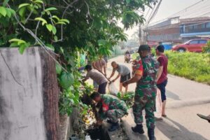 Cegah Banjir, Babinsa Bersama Warga Bersihkan Saluran Air