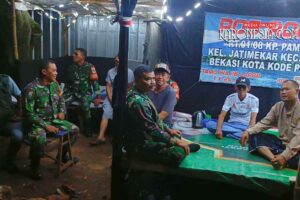 Editor: Lingga  |  @KARONESIA.COM Kota Bekasi, KARONESIA.com | Koramil 04/Jatiasih Kodim 0507/Bekasi melaksanakan patroli malam dan siskamling terpadu bersama Komcad, Komduk, serta unsur masyarakat, Minggu malam (14/12/2025). Patroli 3 pilar yang dipimpin Serka Mursidi ini melibatkan 32 personel gabungan TNI, Polri, Satpol PP, Linmas, Mitra Jaya, dan warga. Tim bergerak secara mobile menyusuri sejumlah titik…