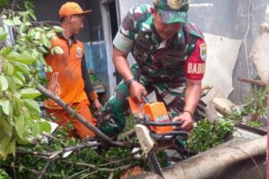 Babinsa Cilandak Timur Bantu Evakuasi Rumah Tertimpa Pohon di Pasar Minggu