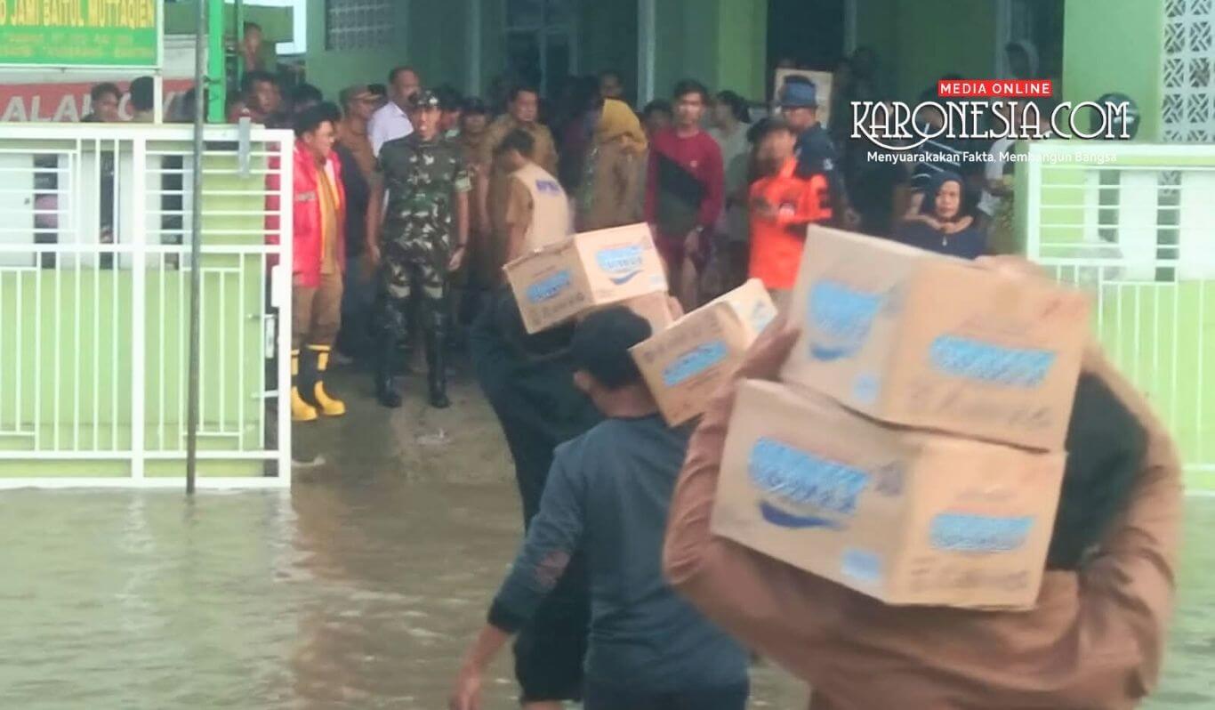 Lebih lanjut Dandim menambahkan, selain meninjau lokasi banjir Bersama rombongan mengunjungi tempat pengungsian warga dampak banjir di gedung BLK Desa Jatimulya Kecamatan Kosambi dan langsung memberikan bantuan Sembako dan peralatan kebutuhan pengungsi.