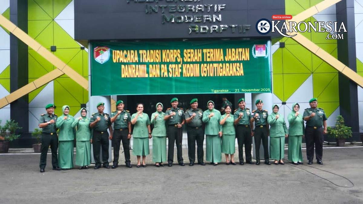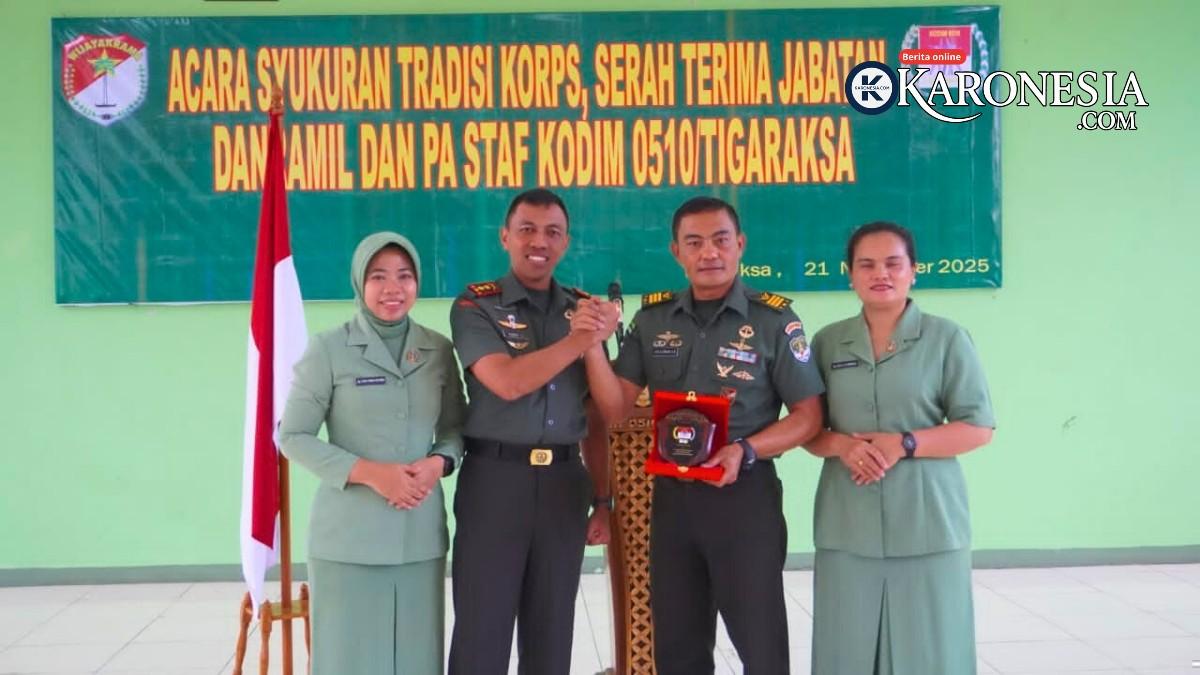Tigaraksa, KARONESIA.com | Komando Distrik Militer (Kodim) 0510/Tigaraksa di bawah Korem 052/Wijayakrama menggelar upacara resmi pemberhentian dan pengangkatan dalam jabatan Perwira Menengah (Pama) di Markas Kodim, Jumat (21/11/2025).
