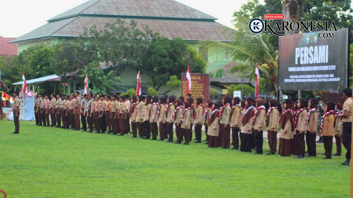 Peserta PERSAMI (Perkemahan Sabtu Minggu) mengikuti upacara di lapangan. Kebersamaan dan disiplin menjadi modal utama kegiatan kepramukaan. (Foto: Kodim 0110/Abdya)