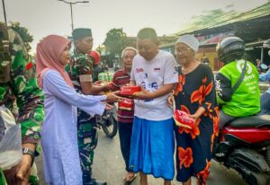 Danramil 01/Tgr Mayor Kav Andi Budiman menjelaskan, pembagian takjil kepada warga yang melintas di Jalan KH Hasyim Ashari dalam rangka membangun kepedulian antar sesama di bulan Ramadhan.