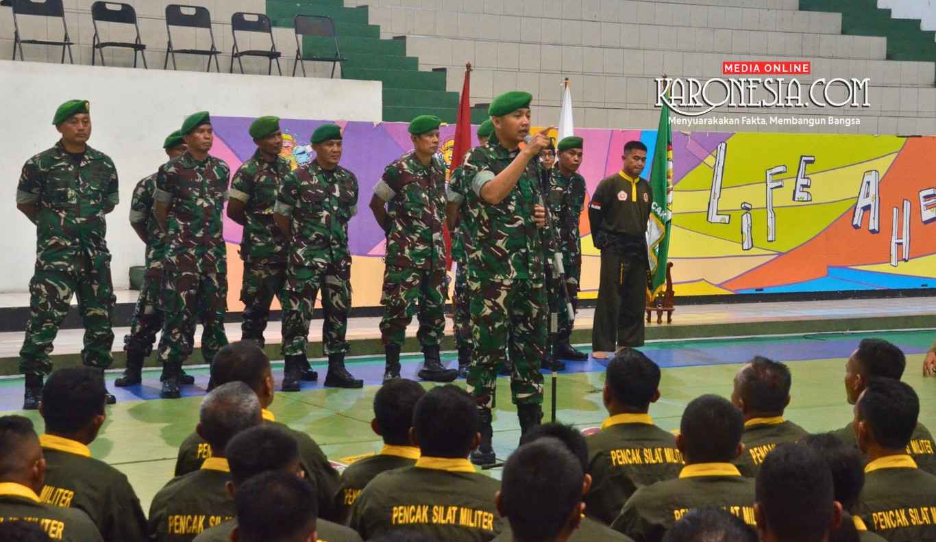 Semarang, KARONESIA.com | Asops Kasdam IV/Diponegoro Kolonel Inf Teguh Wiratama, S.Sos., memimpin kegiatan Uji Kenaikan Tingkat (UKT) Pencak Silat Militer dari Sabuk Hijau ke Sabuk Merah, sekaligus penutupan Latihan Kader Pelatih Pencak Silat Militer (Latkadertih PSM) Gelombang II yang dilaksanakan secara tersebar di satuan jajaran Kodam IV/Diponegoro. Kegiatan tersebut dilaksanakan di GOR Patriot Makodam sebagai bagian dari pembinaan kemampuan bela diri militer, Rabu (31/12/2025).