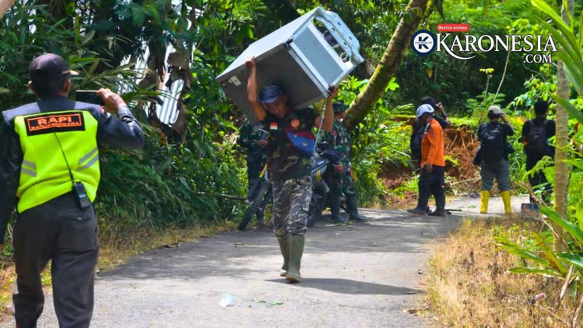 Banjarnegara, KARONESIA.com | Upaya penanganan pascabencana tanah longsor di Dusun Situkung, Desa Pandanarum, Kecamatan Pandanarum, terus dilakukan secara terpadu. Relawan bersama warga dibantu aparat TNI dari jajaran Kodam IV/Diponegoro bergotong-royong mengevakuasi barang-barang berharga milik warga yang terdampak, termasuk hewan ternak, hasil bumi, dan dokumen penting, Selasa (18/11/2025).