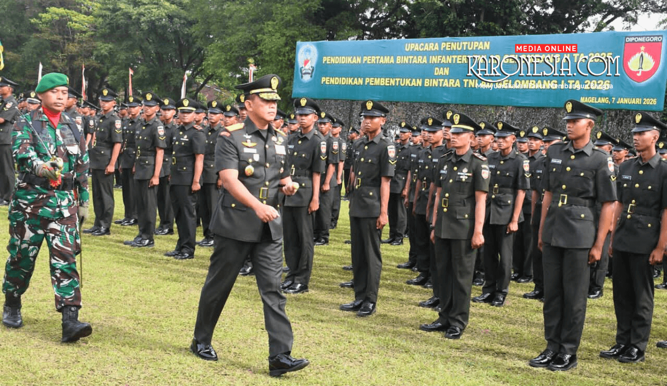 Magelang, KARONESIA.com | Pangdam IV/Diponegoro Mayjen TNI Achiruddin, S.E., M.Han., memimpin Upacara Penutupan Pendidikan Pertama Bintara (Dikmaba) Infanteri TNI Angkatan Darat Gelombang II Tahun Anggaran 2025 dan Pendidikan Pembentukan Bintara (Diktukba) Gelombang I Tahun Anggaran 2026 di Lapangan dr. Koesen Hirohoesodo, Rindam IV/Diponegoro, Rabu (7/1/2026).